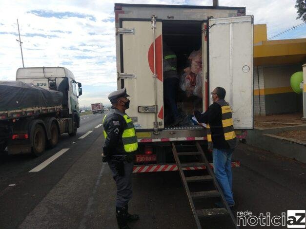 A fiscalização conjunta foi realizada na Rodovia Anhanguera, km 151 +600 metros, pista sentido interior/Capital.
