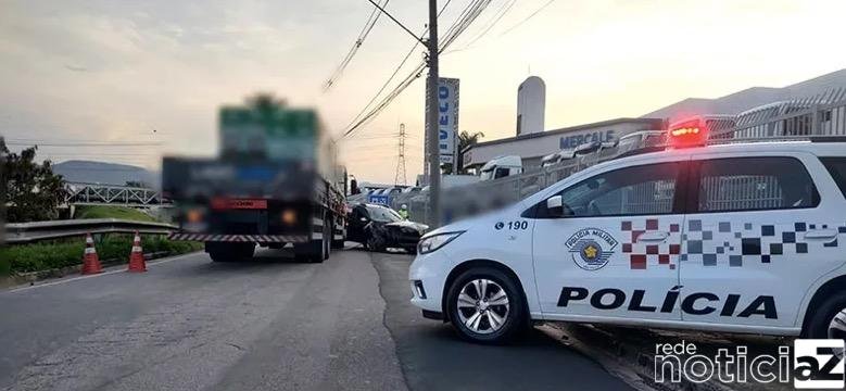 Acidente entre carro e caminhão deixa duas mulheres feridas em Jundiaí. Caso aconteceu na Avenida Armando Giassetti, no Jardim Shangai, no final da tarde desta segunda-feira (04).