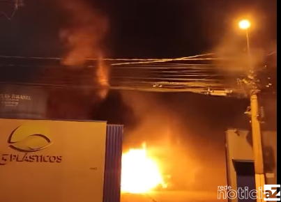 Um incêndio de grandes proporções devastou uma empresa de materiais plásticos localizada na Estrada Atílio Biscuola, no Bairro Capivari, em Louveira, na noite de quinta-feira (05).