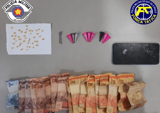 A mulher foi detida na entrada do imóvel. Já na casa foi encontrada uma sacola com 42 pedras de crack, totalizando 2g, além de 9 microtubos de cocaína, pesando 8g. Além disso, foram apreendidos R$ 273,00 e uma lâmina usada para fracionar a droga.