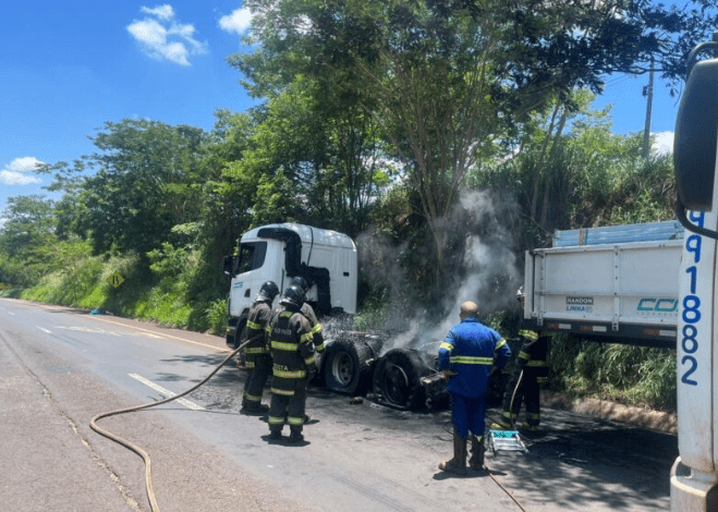 Um princípio de incêndio em um caminhão Scânia, carregado com estrutura de ferro, mobilizou equipes do Corpo de Bombeiros e de uma usina no km 114 da rodovia Assis Chateaubriand em Barretos.