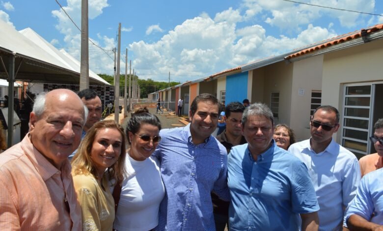 A cerimônia de entrega das 130 casas do Conjunto Habitacional Guaíra J “Antônio Nogueira Lelis” em Guaíra foi realizada no sábado (2), com a presença do governador Tarcísio de Freitas e do prefeito Junão. A deputada estadual Fabiana Bolsonaro, o deputado estadual Valdomiro Lopes e outros prefeitos também participaram do evento.