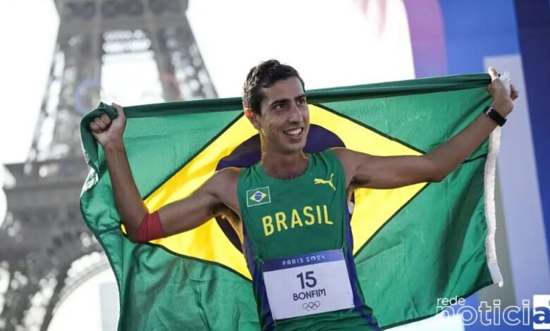 Caio Bonfim já havia se aproximado da medalha nos Jogos Rio 2016, quando terminou a prova da marcha na quarta posição, até então o melhor resultado para o Brasil na prova. Em Londres (2012), sua estreia olímpica, ele passou mal e não completou o percurso. E em Tóquio (2021), o brasiliense terminou na 13ª colocação. O marchador também tem no currículo duas medalhas de bronze em mundiais de atletismo (2017 e 2023), além de três medalhas na prova individual em Jogos Pan-Americanos (prata em 2019 e 2023, bronze em 2013). receber a medalha de prata