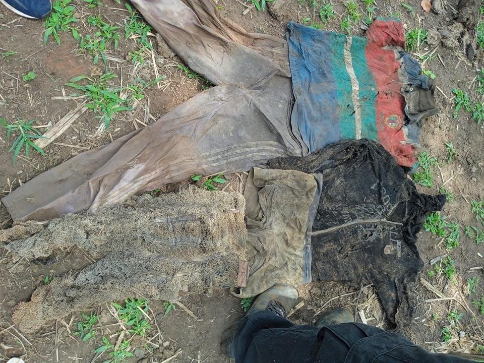 Junto ao local das partes da ossada os funcionários da Usina encontraram também uma bermuda de cor escura, todos expostos e visíveis no chão.