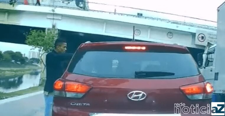 Em uma cena surpreendente registrada por uma câmera instalada no veículo que seguia atrás, dois assaltantes disfarçados de vendedores ambulantes abordaram um motorista na movimentada Avenida Cruzeiro do Sul, em São Paulo. O incidente, deixou a vítima sem sua aliança e seu celular.