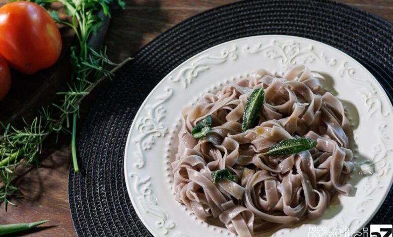 Enfim, a massa do tipo fettuccine é feita de vinho na manteiga e sálvia. O prato enche os olhos pela cor e pelo aroma. Macarrão ao vinho tinto é uma boa pedida para a festa da uva que tem dezenas de outros itens da gastronomia que respira uva.