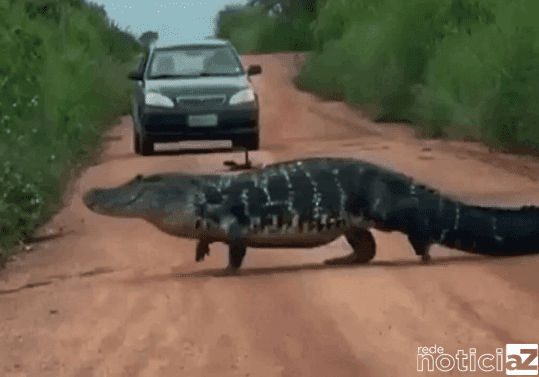 VÍDEO – Jacaré gigante ‘para o trânsito’ na zona rural