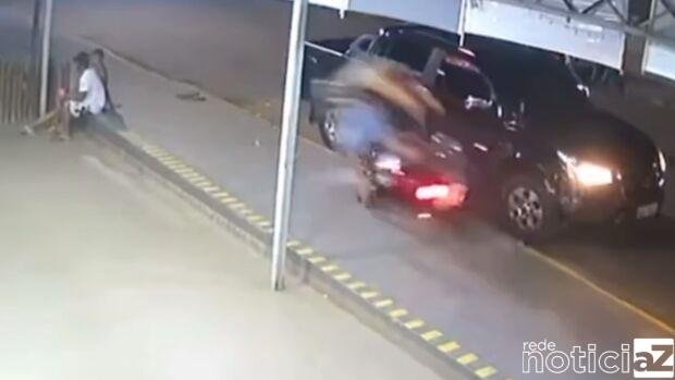 VÍDEO – Motociclista e passageiro ‘voam’ em batida