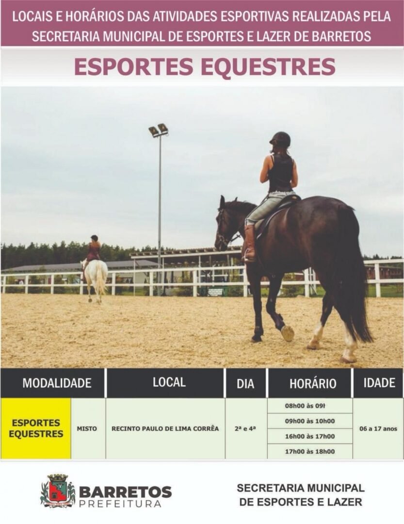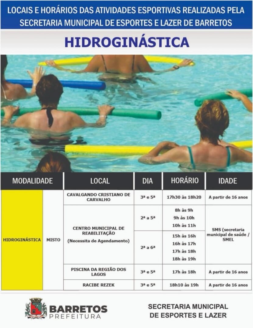A Prefeitura da Estância Turística de Barretos divulgou o calendário de atividades esportivas gratuitas oferecidas à população, por meio da Secretaria Municipal de Esportes e Lazer, com locais e horários de treinamento para diversas modalidades.