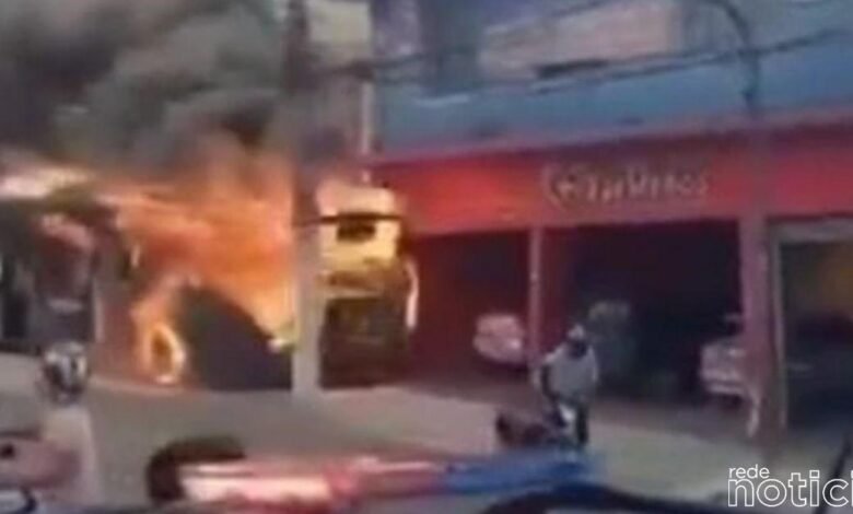 Um ônibus pegou fogo e desceu desgovernado pela Avenida Senador Teotônio Vilela, na Zona Sul de São Paulo, no início da tarde desta segunda-feira (25). O coletivo, da linha Jardim Alpino – Estação Grajaú, seguiu descontrolado até bater em um poste, momento em que ocorreu uma explosão e causou correria no local.