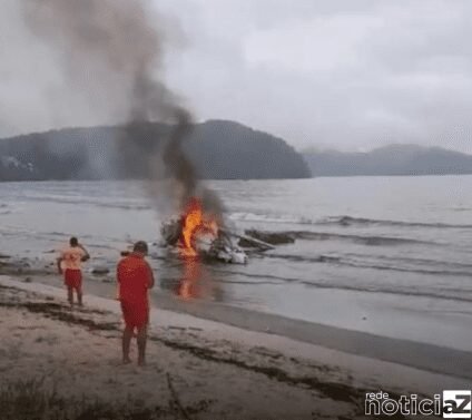 Um vídeo capturado por testemunhas mostra o momento em que a aeronave sai do aeródromo, passa pela pista e chega à praia em chamas.