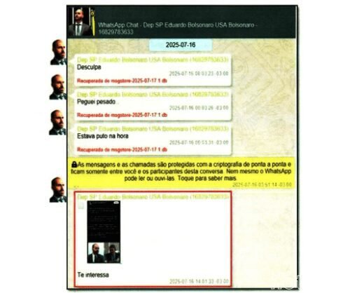 Na mesma conversa, Eduardo ameaçou abandonar articulações que mantinha com autoridades dos Estados Unidos, citadas pela PF como parte de uma tentativa de interferir no julgamento do ex-presidente.