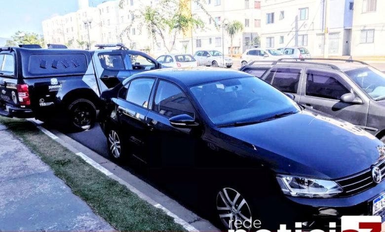 Hoje (16) por volta das 10h, a equipe do Apoio Tático da GMJ do grupamento alfa, guardas R.Oliveira, Matenauer e Thiago Santos, com vistas ao veículo no Fazenda Grande, conseguiram visualizar o carro estacionado ao lado dos apartamentos do bairro.