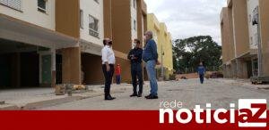 Na visita ao empreendimento, o prefeito Jaime Cruz esteve acompanhado dos secretários municipais de Habitação, Edison Ruiz, e de Assistência Social, Eduardo Galasso.