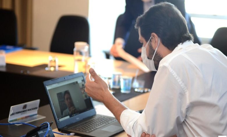 Por videoconferência, nesta quarta-feira (20), o prefeito Luiz Fernando Machado teve acesso a informações sobre a gestão dos leitos das redes pública e privada destinados a pacientes com coronavírus. Desta vez, o objetivo foi atualizar dados do plano de contingência, elaborado pelo Comitê de Enfrentamento, no que se refere à ocupação das enfermarias e UTIs de Jundiaí. Participaram representantes dos hospitais São Vicente de Paulo (HSVP) e Regional (HR), públicos, e os privados Paulo Sacramento (Intermédica), Pitangueiras (Sobam/Amil) e Santa Elisa / Unimed (Unimed).