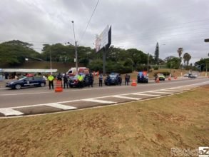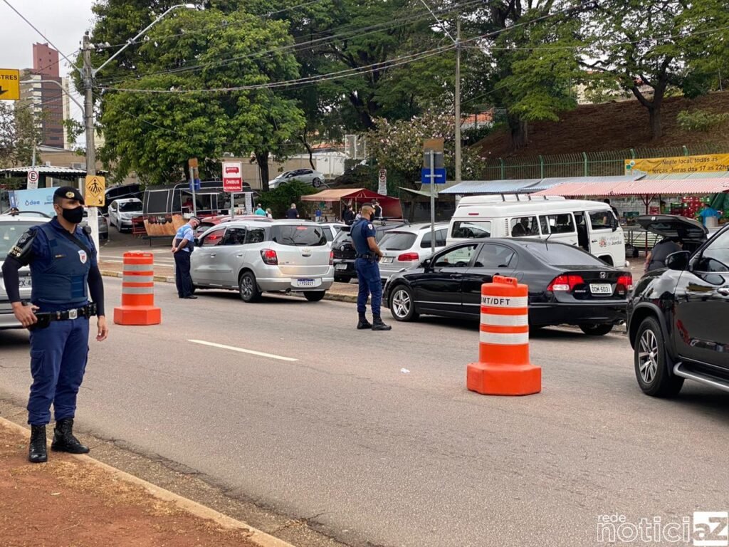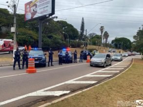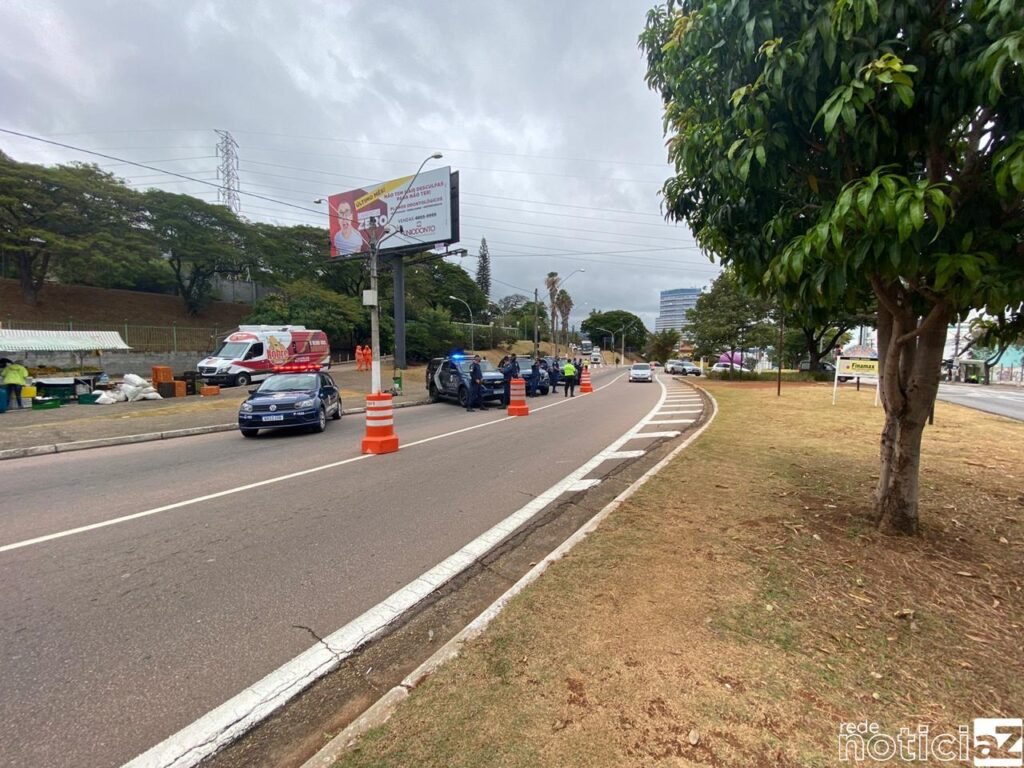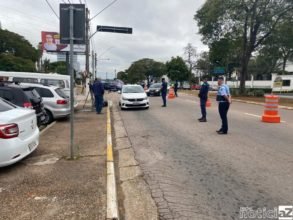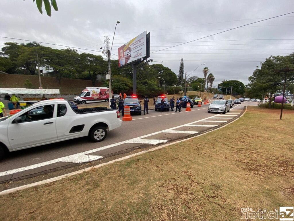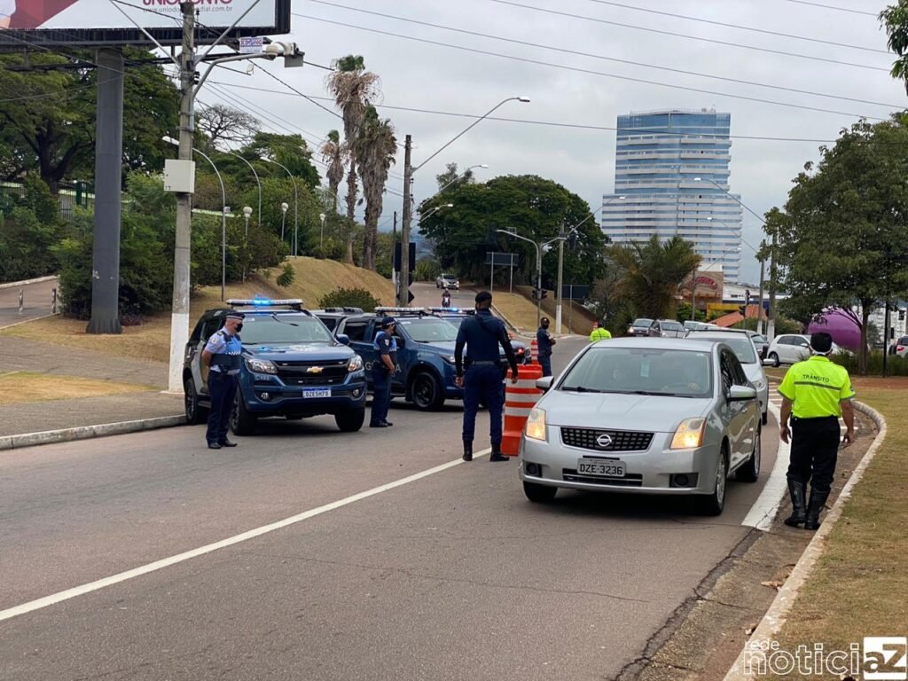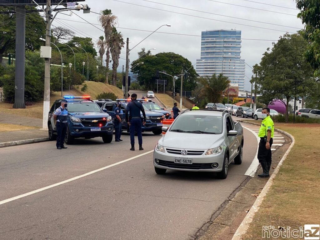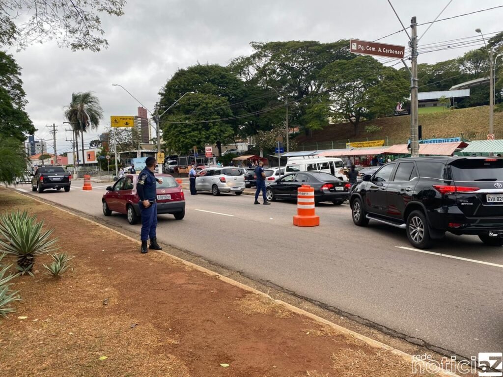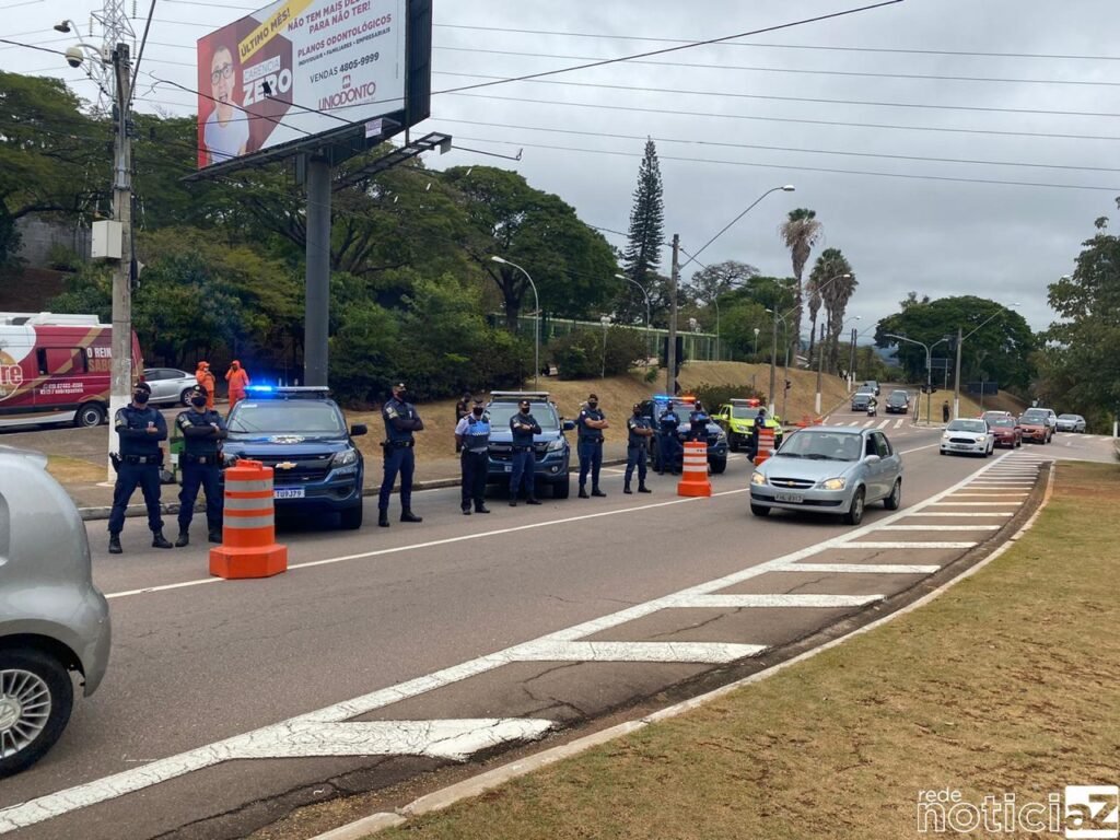 Barreira na Avenida Jundiaí na manhã deste sábado: orientação para os motoristas, evitando deslocamentos desnecessários