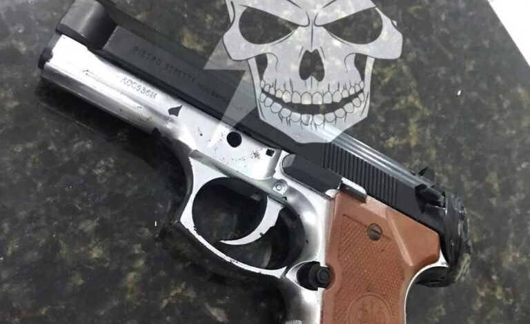 Em busca pessoal foi localizado em seu bolso um simulacro de pistola, já o outro indivíduo que estava no local informou a equipe que era vítima, foi abordado pelo detido que disse pra ele ficar de boa que só queria roubar alguém.