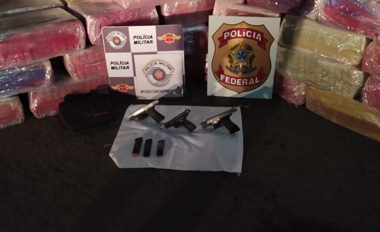 Total da apreensão 6.835,120 kg de maconha e 3 pistolas, sendo 2 de calibre 9mm e 1 do calibre 380.
