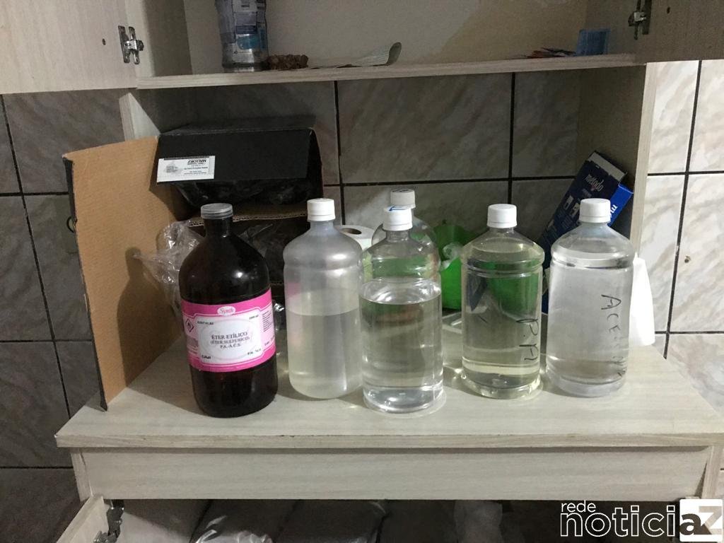 Na manhã dessa terça-feira, a equipe foi até os endereços apontados pelo tráfico de drogas e na casa do principal acusado foram encontrados os entorpecentes, a contabilidade e os petrechos para o refino. Ao todo foram apreendidos mais de 34 Kg de maconha, mais de 13 Kg de cocaína, 50 mil tubetes vazios, uma quantia de R$ 12.105,00, quatro rádios HT, 5 frascos com substâncias líquidas semelhantes a acetona, 3 balanças de precisão, faças, peneiras, liquidificador, secadora artesanal, contabilidade do tráfico e 3 sacos de sílica, totalizando 50 kg desse produto usado para preparo e refino de cocaína.