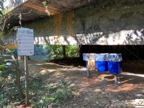 Localizado junto à ponte da Avenida Bandeirantes, foram retirados cerca de 450 Kg de diversos resíduos descartados irregularmente na Área de Preservação Permanente – APP do Rio Atibaia. No local também foram instaladas tela de alambrado e uma placa orientativa para a conscientização ambiental dos usuários deste local.