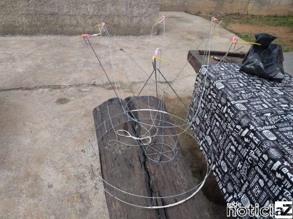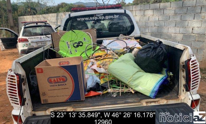 Cinco indivíduos foram detidos pela prática de soltura de 2 balões, dos quais um, tem 5 metros e outro com 7 metros e bandeira. Ainda foram apreendidos muito material para a confecção de balões e cangalha, bandeira abandonadas na mata, em local próximo. A chácara fica na Estrada do Rio Acima s/n bairro: Rio Acima, em Nazaré Paulista.