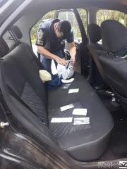 Durante a revista no veículo, os guardas encontraram no banco traseiro, seis placas de identificação veicular que são fixados em carrocerias. De acordo com os guardas, essas placas são utilizadas normalmente para veículos dublês.