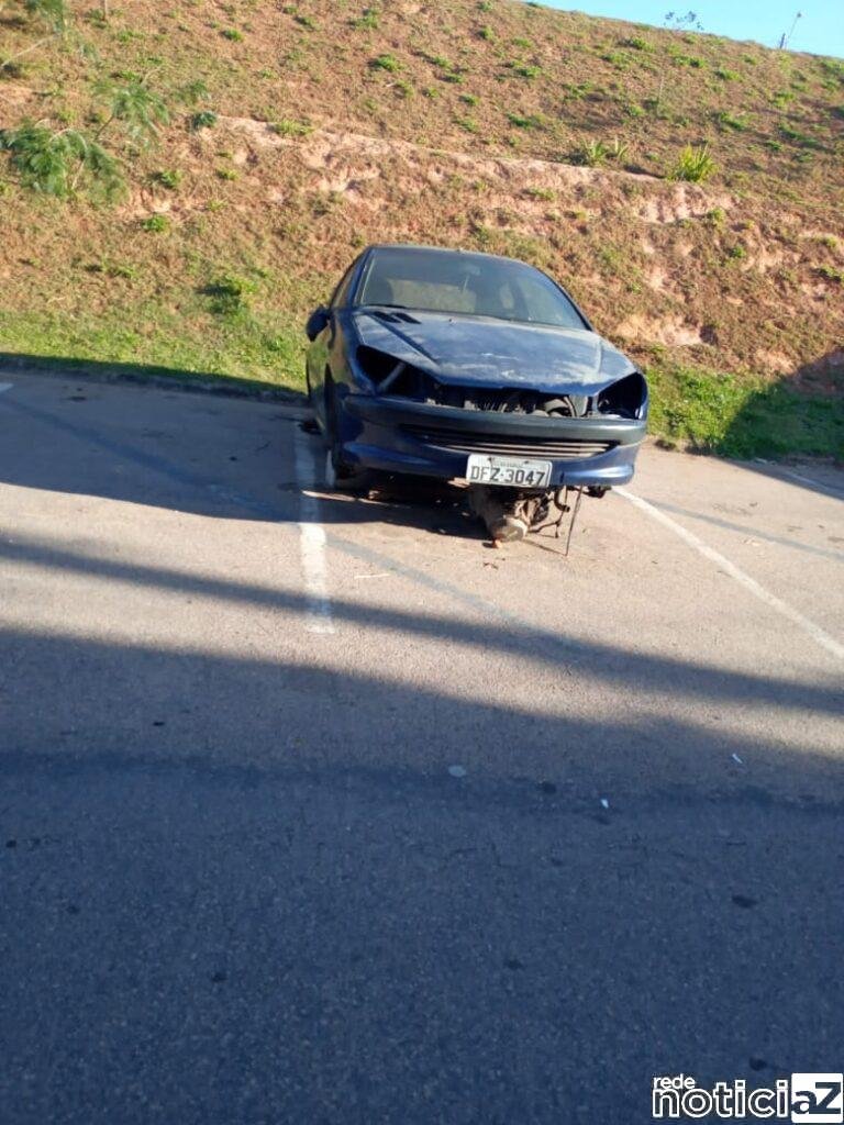 Fomos averiguar o veículo e localizamos o RG do autor junto com 1048 cápsulas de crack e uma pequena quantidade de lancha perfume quando estávamos indo embora uma pessoa apontou um possível local onde o autor estaria, voltamos até lá e vimos um homem saindo correndo de dentro de um veículo ele pulou de um barranco e saiu correndo.