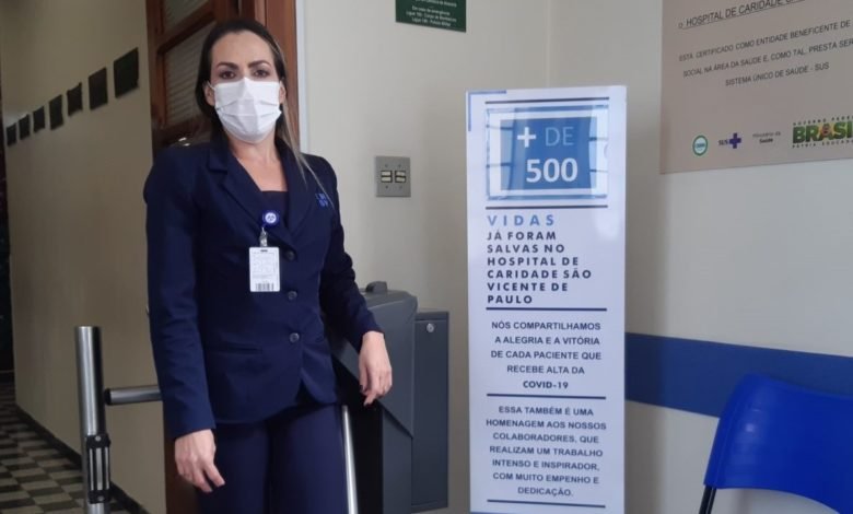Com o objetivo de parabenizar os funcionários pelo trabalho desenvolvido frente à pandemia, e celebrar a alta dos pacientes recuperados da covid-19, o Hospital de Caridade São Vicente de Paulo (HSV), implantou nesta sexta-feira (17), um totem na entrada da instituição. O objeto contabiliza a quantidade de pacientes que já venceram a doença, além de possuir frases de motivação e agradecimento.