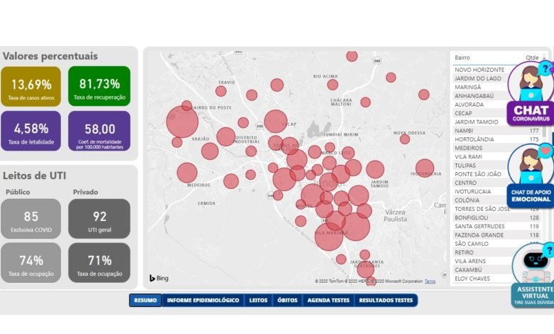 Um sistema moderno, robusto, muito detalhado e transparente. Esta é a apresentação dos dados da Covid-19 em Jundiaí. O programa desenvolvido de forma especifica, em tempo recorde, mostra uma radiografia de dezenas de itens que envolvem dados absolutos e outros que também podem ter uma interpretação para ajudar no combate ao novo coronavírus. Na página da web podemos acompanhar o número de casos confirmados da doença. Número de pacientes que se recuperaram, os casos fatais e pessoas em tratamento.