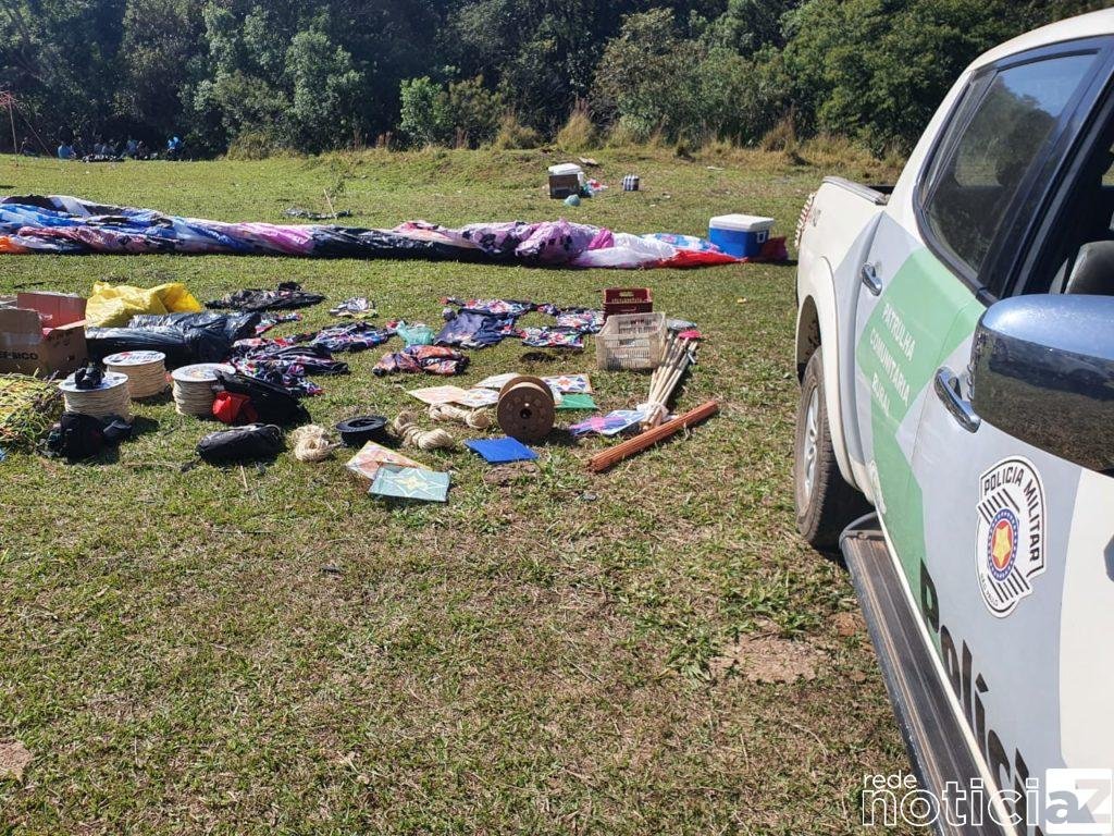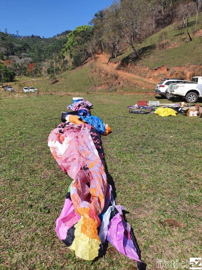 O local, em Bom Jesus dos Perdões, estava estava sendo monitorado como sendo ponto de soltura de balões não tripuláveis. No flagrante estava cerca de 20 à 30 pessoas confeccionando um balão.