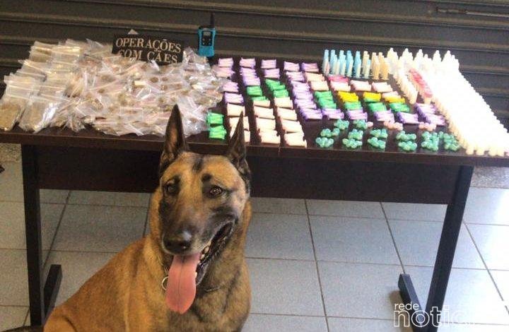 Em menos de dez dias, é a segunda vez a equipe da especializada Canil (guardas Calixto, Monique e Júlio César) com o cão Gold localiza drogas. Na segunda-feira quase 900 porções de entorpecentes foram encontrados durante o patrulhamento no Jardim Sales.Os guardas realizavam o patrulhamento próximo da EMEB dos Sonhos quando visualizaram diversos jovens próximos da escola.Com a aproximação da viatura, os indivíduos correram.O cão farejador da GM da raça Belga Malinois foi colocado à prova numa viela e localizou duas sacolas cheias de drogas.Os guardas contabilizaram 426 porções de cocaína, 314 de maconha, 80 de crack e ainda 15 frascos de lança perfume. Um rádio comunicador foi achado no pacote plástico. Ninguém foi encontrado.A ocorrência foi apresentada no 2º DP.Na semana passada, outras 600 porções foram encontradas através do faro do cão de 5 anos de idade. A equipe estava em patrulhamento pelo Jardim São Camilo a caminho da EMEB Maria José Maia de Toledo e visualizaram os jovens ao lado de uma viela. O cão através do faro localizou quase 400 porções de drogas