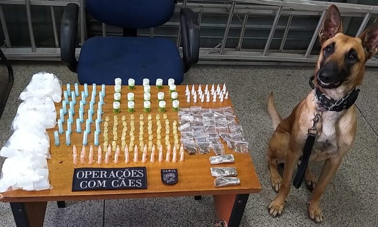 Operações com cães faz apreensão de drogas perto de escola