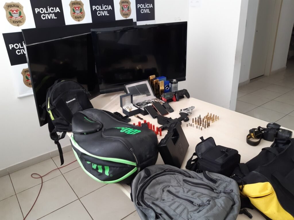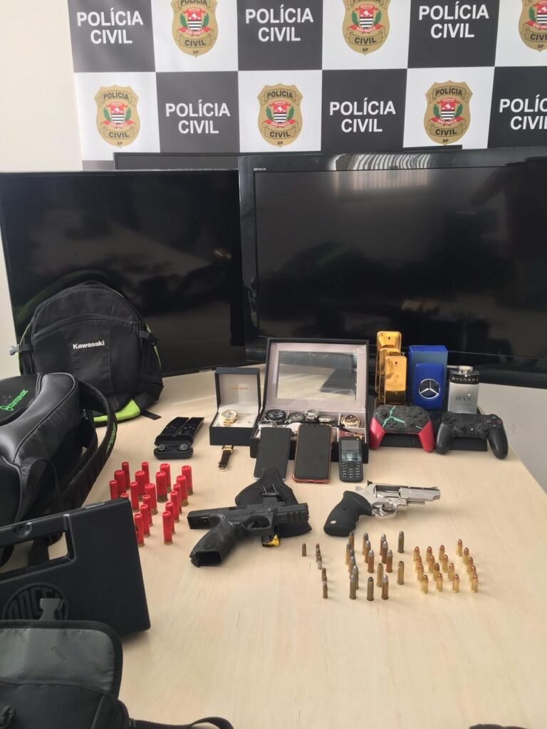 Deste modo, munidos de informações e acreditando que tais indivíduos teriam participação no roubo desta noite, devidos as características físicas e “modus operandi”, os policiais foram até as residências alvos das buscas, sendo que em uma delas, no bairro Vilarejo – Cabreúva, onde reside um dos suspeitos , foram encontrados os muitos objetos que foram roubados da casa invadida na madrugada. Além de armas de fogo, televisores, celulares, relógios, perfumes e bolsas que foram reconhecidos por vítimas de outros roubos.