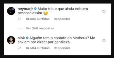 Entre os famosos que se manifestaram. Neymarjr, Alok,