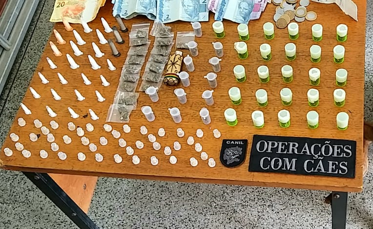 Os indivíduos assumiram a propriedade sobre as drogas. Eles tinham pouco mais de 90 reais.