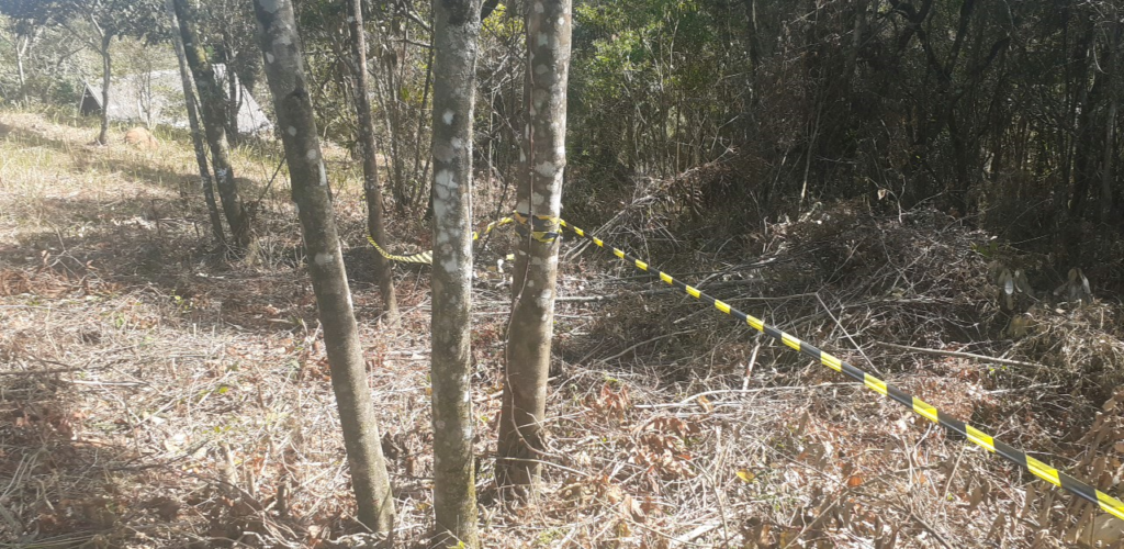 Em outro local na mesma cidade, a denúncia era sobre corte de árvores. A polícia constatou destruição de vegetação nativa secundária, em estágio inicial de regeneração, correspondente a 0.11HA, mediante bosqueamento, por meio de foice, em áreas comum e urbana. Foi feita uma Advertência, ao proprietário; Área embargada, Polícia Civil avisada do crime.