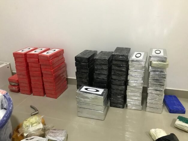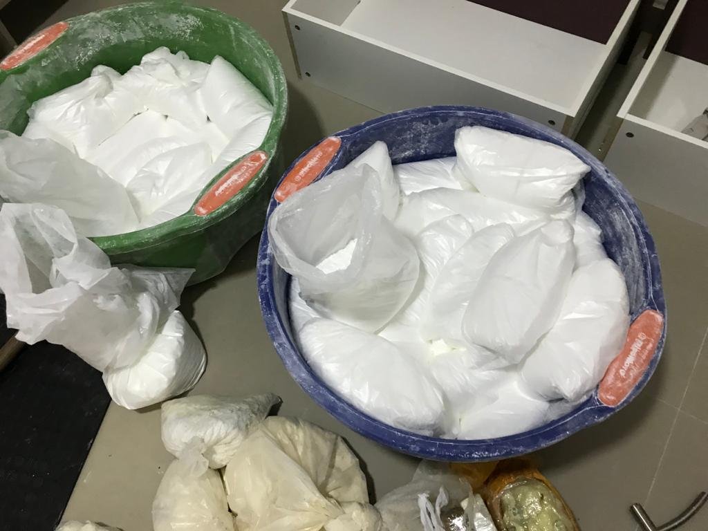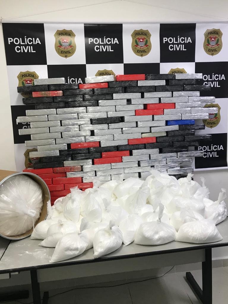 Drogas: 236.600 (duzentos e trinta e seis quilos e 600 gramas) de cocaína, sendo 53 sacos, 132 tijolos, um saco grande (24 quilos) e 6 quilos em pedaços. Insumos apreendidos: 70 quilos de pó branco a ser identificado, 32 litros de éter, 14 de acetona e 2 de amônia.