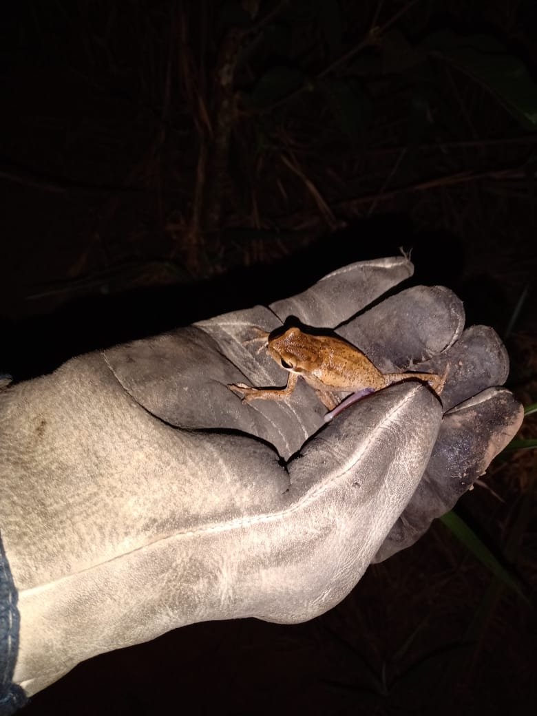 Os Bombeiros Voluntários e os Agentes da Defesa Civil de Várzea Paulista estiveram, durante a madrugada, na Serra do Mursa para avaliar um denúncia de incêndio em vegetação. Durante a caminhada encontraram uma pequena rã.