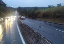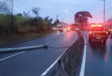 Os agentes de trânsito Everton, Roveri e Paulo vão ficar no local até que a via seja liberada pela empresa responsável pelo fornecimento de energia na cidade.