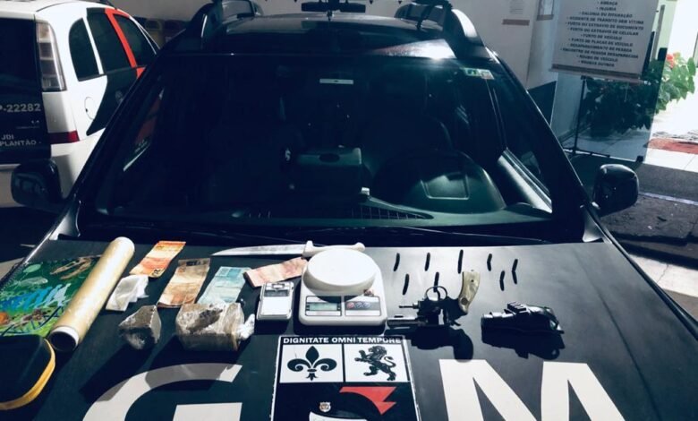 Diante dos fatos, dado voz de prisão ao indivíduo e conduzido com os ilícitos até a delegacia de Itatiba, onde após a autoridade policial tomar ciência do ocorrido, ratificou a voz de prisão em flagrante pelo crime de tráfico de Drogas (Art. 33) e Porte Ilegal de Arma (Art. 16 da L 10826/03), ficando L. a disposição da justiça.