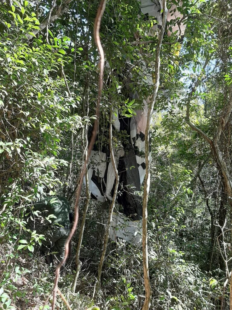 O balão de grande porte com bandeira caiu na Avenida Luiz José Sereno, no Eloy Chaves, em área de mata de APP . Depois de resgatado, o balão foi levado para a Delegacia fazer a apreensão.