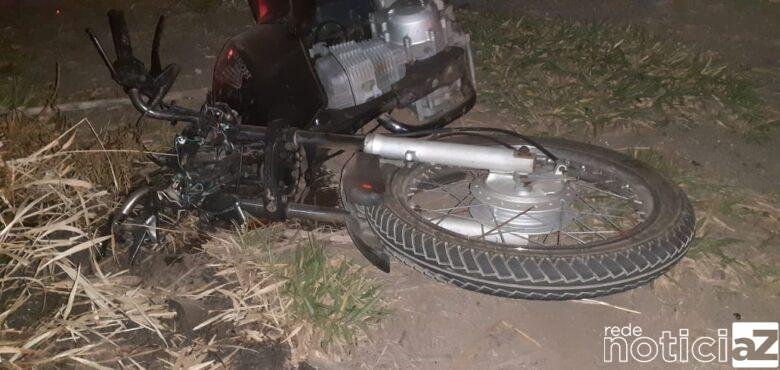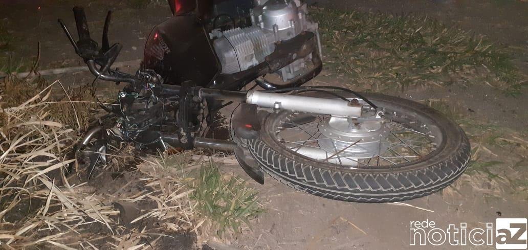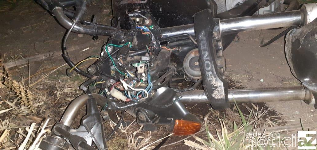 A moto ficou totalmente destruída. Pelas imagens da pra gente ter uma noção da violência da batida.