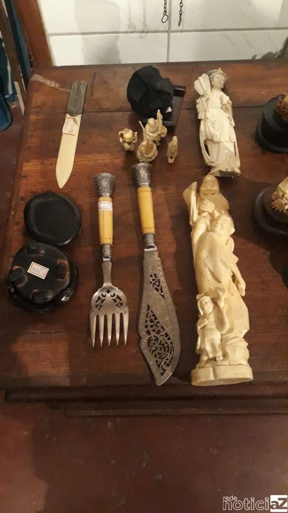 Estes materiais foram apreendidos nos endereços de pessoas, investigadas pela Polícia Federal na Operação Marfim, que vendiam as peças de marfim, retirado de elefantes, em feiras de antiguidades.