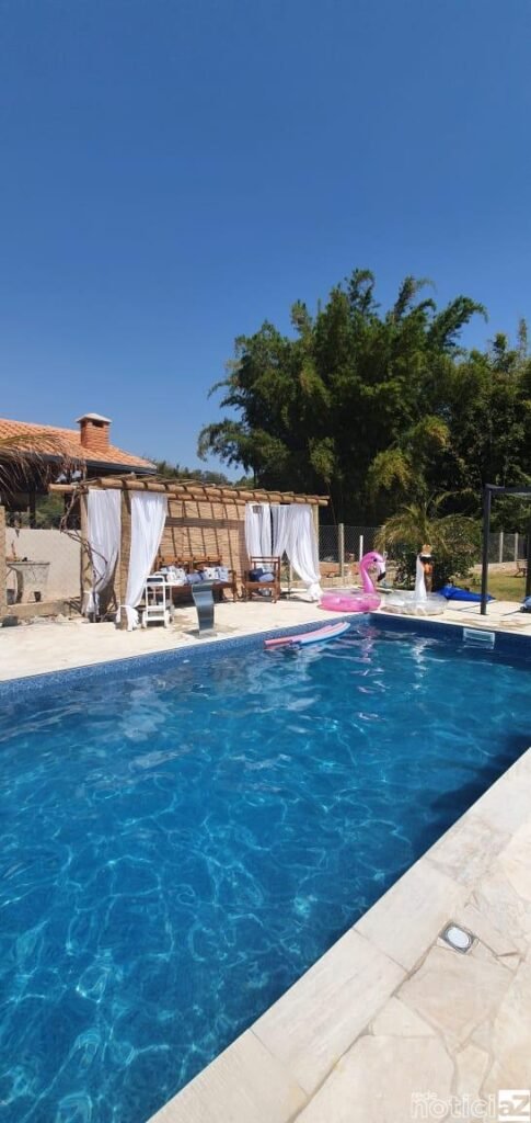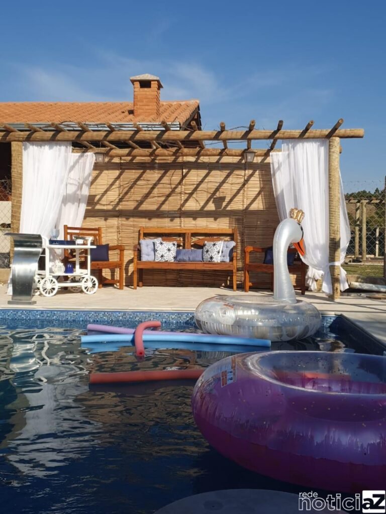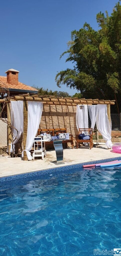 Carolina Prado viajou com a família para Punta Cana, na República Dominicana. Ela diz que curtiu demais o período de férias. Na volta deu um jeito de criar espaços, na casa de campo, que lembram a viagem. Coqueiros ao lado da piscina e um pergolado decorado de forma rústica. Cadeiras de madeira, revestimento em junco e iluminação retrô.