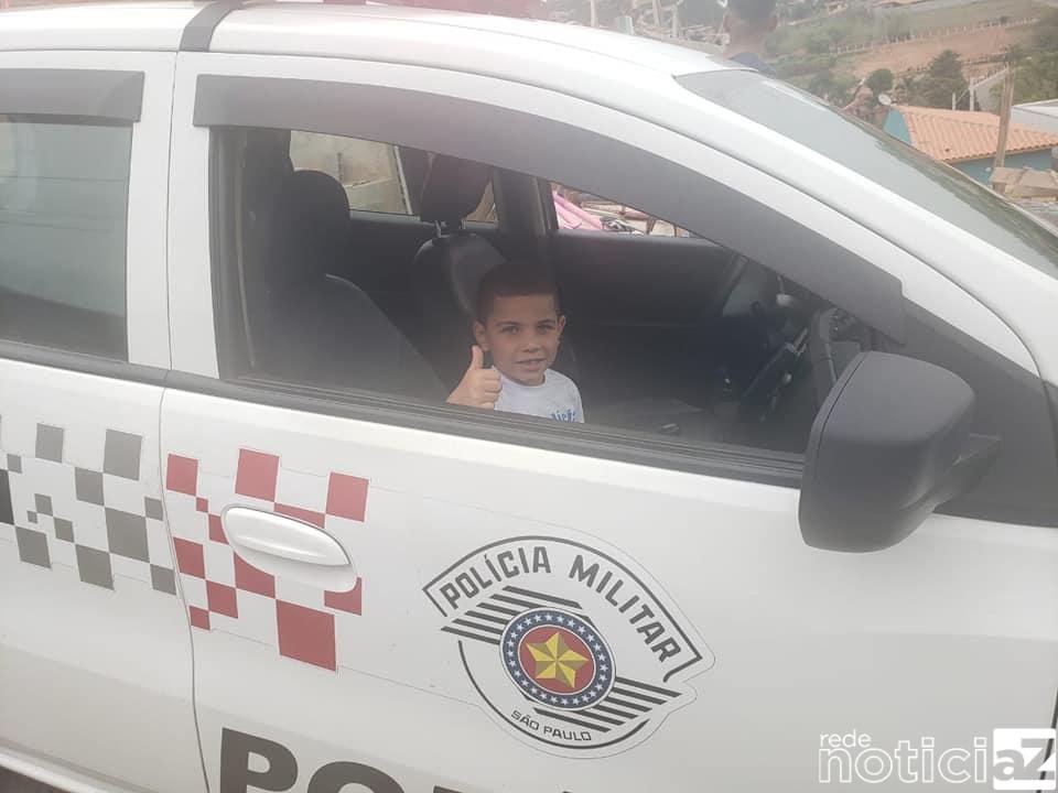 O jovem tem os Policiais como heróis… e ele admira tanto que tem o objetivo de ingressar nesta carreira militar.