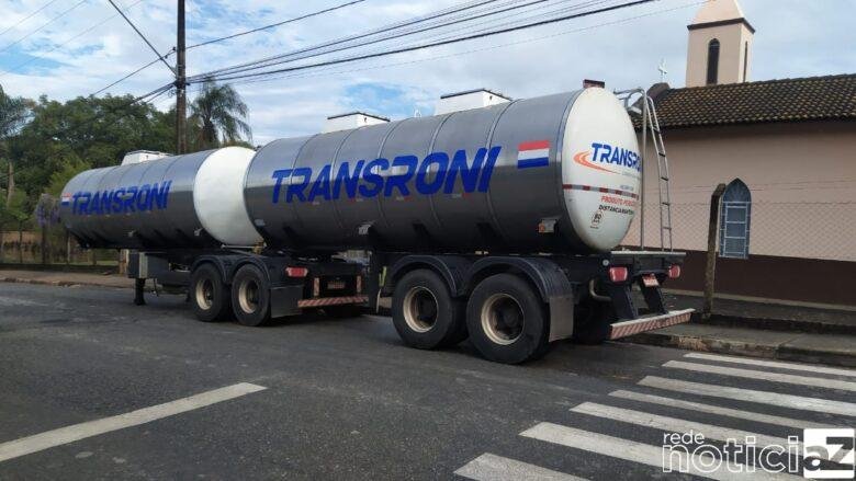 Em deslocamento para o local da denúncia a equipe já avistou uma carreta semi reboque tanque abandonado pela via, cerca de 200 metros adiante a equipe visualizou um caminhão Scania parado próximo a entrada do posto de gasolina.