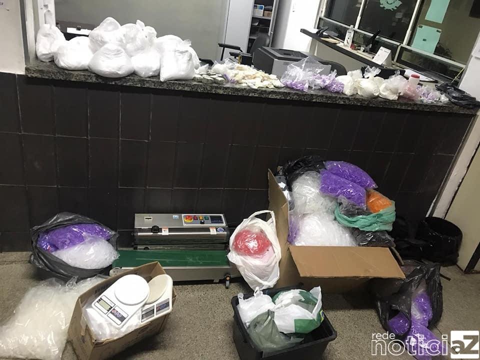 Em vistoria mais aprofundada no interior do imóvel foi localizado também 6846 Kg de substância aparentando ser cocaína, 0,481 gramas em eppendorf aparentando ser crack, 0,585 gramas em eppendorf aparentando ser cocaína, 0,232 gramas de maconha e aproximadamente 39 mil eppendorfs vazios.
