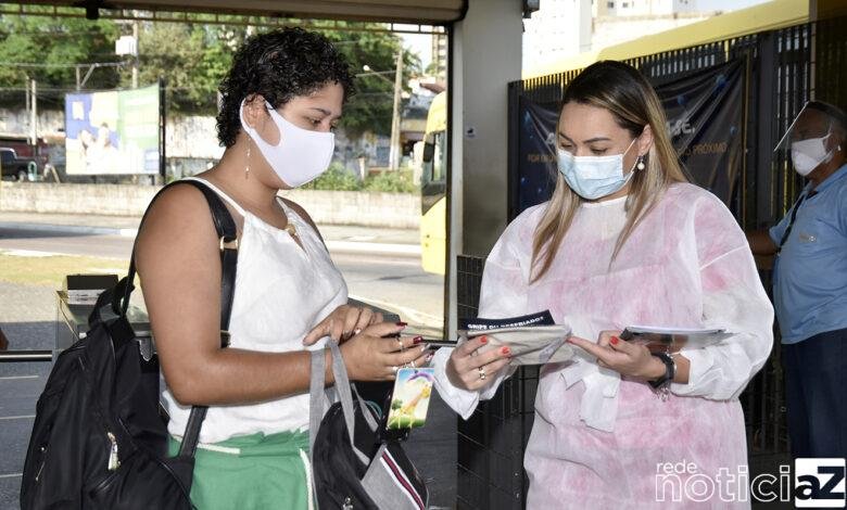 Teve início nesta segunda-feira (5) uma nova etapa do “Ação Saúde nos Terminais”, desenvolvido pelo Comitê de Enfrentamento ao Coronavírus (CEC), da Prefeitura de Jundiaí, com objetivo de orientar a população sobre os cuidados para a prevenção da COVID-19, além de distribuir máscaras de tecido e aferir temperatura e oxigenação dos usuários do transporte público interessados.