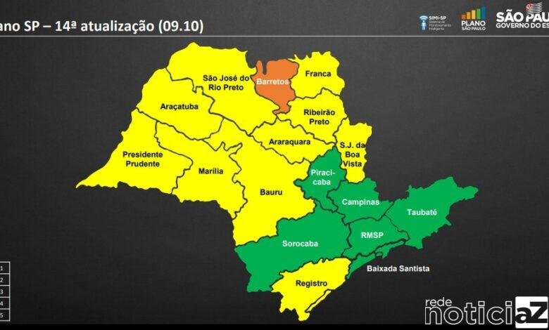 O anúncio ocorreu nesta sexta-feira (9) durante coletiva de imprensa do governador João Doria (PSDB). A capital paulista, junto com a Grande São Paulo e as regiões de Taubaté, Campinas, Piracicaba, Sorocaba e toda a Baixada Santista conseguiram avançar para a fase menos restritiva de flexibilização. Somente a região de Barretos regrediu para a fase Laranja, onde terá de fechar academias e salões de beleza, por exemplo.