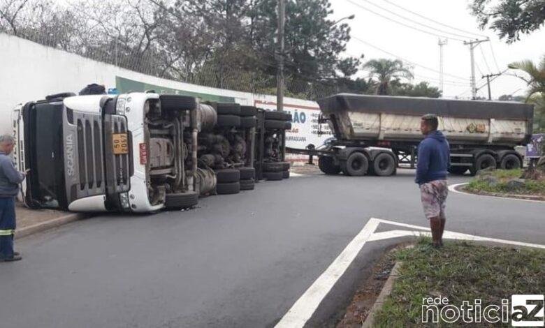 O veículo estava indo fazer a descarga do produto numa indústria da cidade, quando teria perdido o controle na via e caiu. Toda área precisou ser isolada pelos agentes de trânsito junto com o Corpo de Bombeiros e a polícia que fazem o trabalho da remoção. O procedimento deve durar todo o dia.